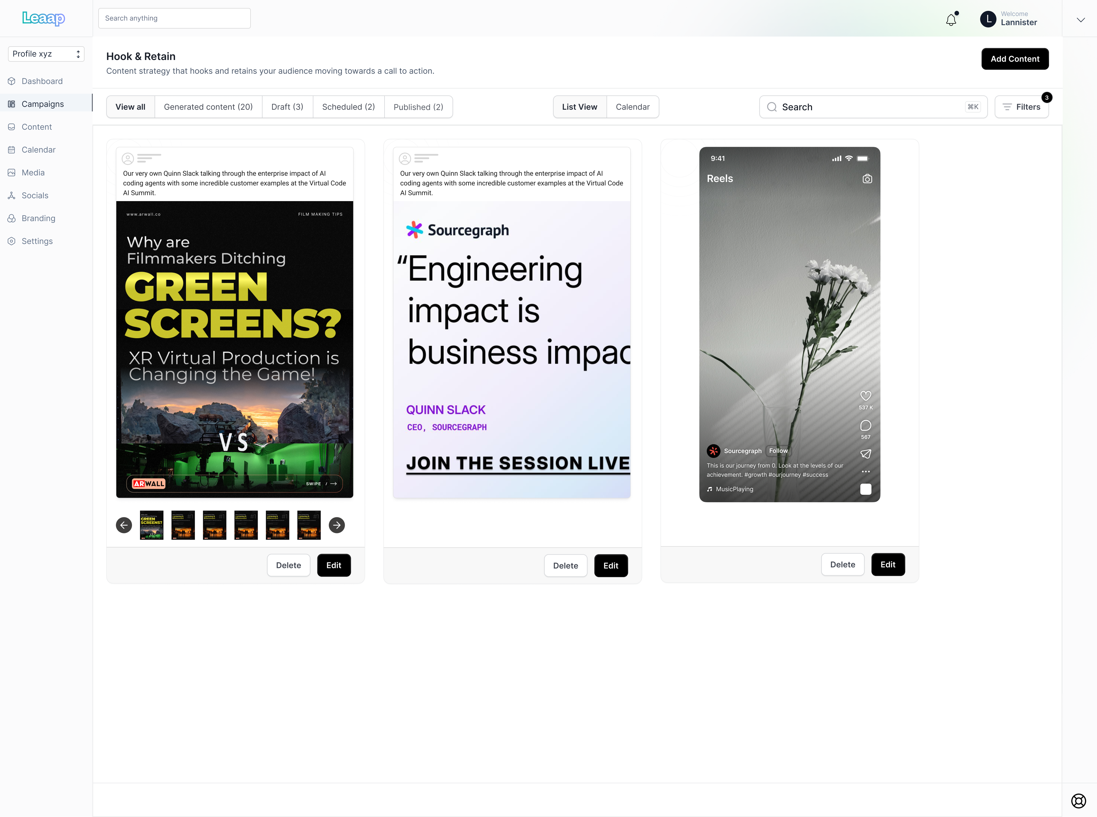 AI-powered content creation that matches your brand voice. From captions to visuals, produce scroll-stopping posts that drive engagement and conversions.